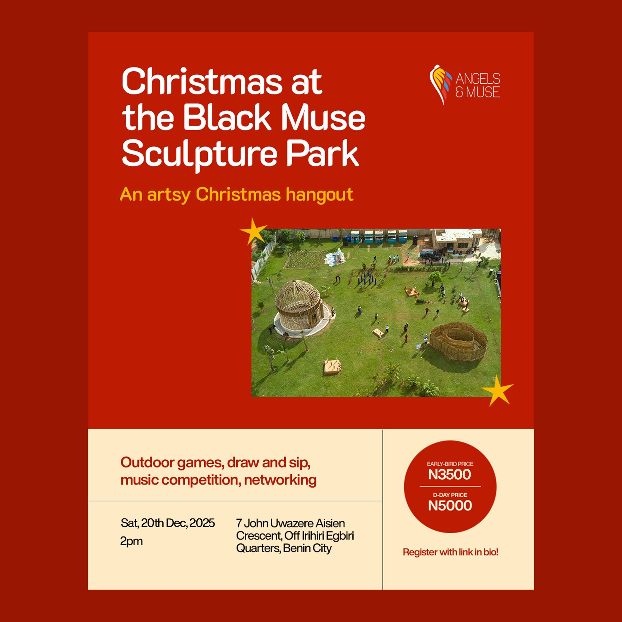 Join us on the 20th of December, 2025 for “Christmas at the Black Muse Sculpture Park,” a one-of-a-kind Christmas experience where the festive spirit of the season meets the richness of art and culture!